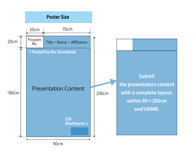 | Poster size | 90cm in width and 200cm in length. (If you were using PowerPoint that will be 63x140cm.) |