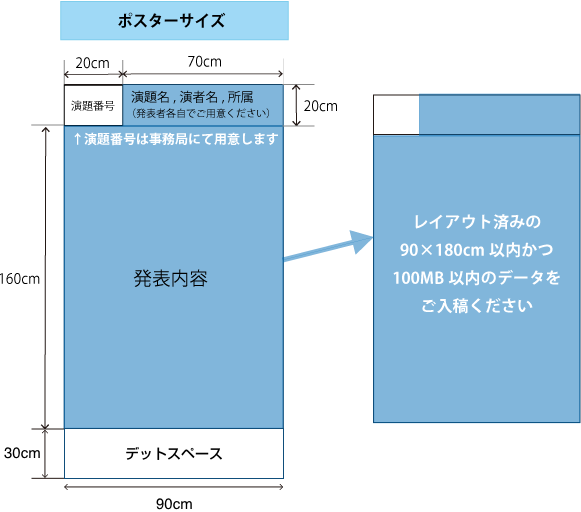 ポスターサイズ | 横90×縦180cm(PowerPointでは、幅70×高さ140cm) |
