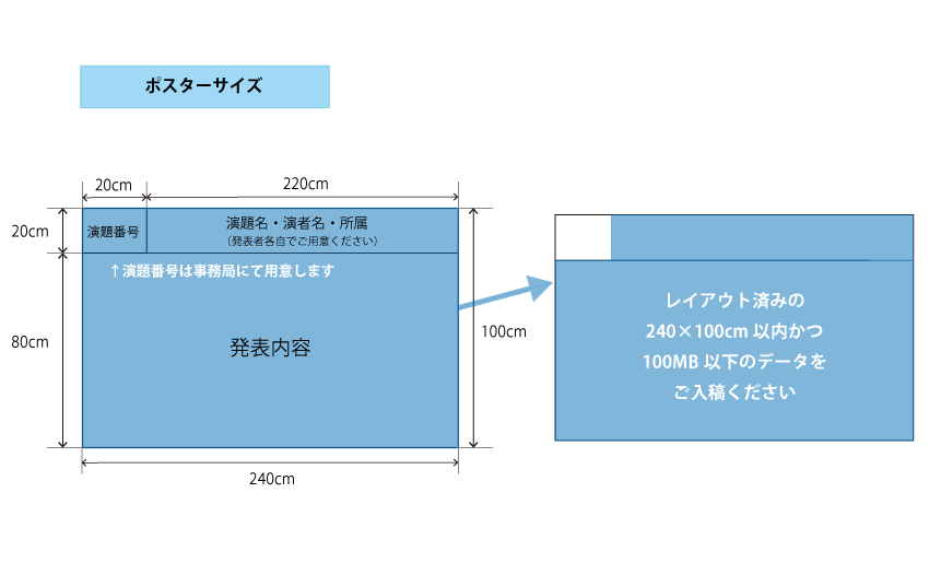 | ポスターサイズ | 横240×縦100cm(PowerPointでは、幅120×高さ50cm) |